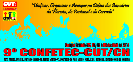 "Unificar, Organizar e Avançar na Defesa dos Bancários da Floresta, do Pantanal e do Cerrado", com esse tema os trabalhadores do Ramo Financeiro da Região Centro Norte do país estarão reunidos em Campo Grande-MS, nos dias 04, 05 e 06 de abril de 2014, para realizar o 9º Confetec-CUT/CN - Congresso Ordinário da Federação dos Trabalhadores em Empresas de Crédito do Centro Norte - Fetec-CUT/CN. O encontro será no auditório da Federação dos Trabalhadores em Educação de Mato Grosso do Sul – Fetems.